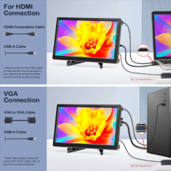 A different size from the SF101T, this 11.6″ Full HD portable monitor supports resolutions up to 1920×1080 for vibrant, crystal clear images. IPS technology delivers a revolutionary color experience. Supports 10-point touch, no additional driver is required, just connect the USB cable to a signal output device such as PC/Raspberry Pi to realize the touch screen function. Equipped with both HDMI-compatible and VGA ports, built-in high-quality speakers, and a 3.5mm headphone output jack, this 11.6 inch touch monitor offers versatile connectivity options and immersive audio.