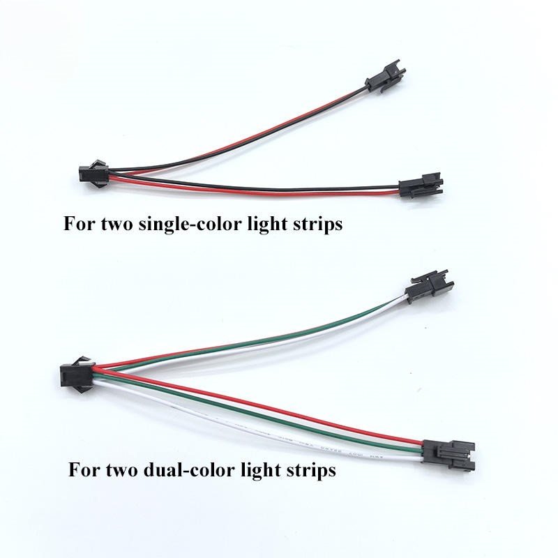 • One-Into-Two Y-Splitter Design – This clever connector allows you to power two separate LED strip runs from a single power source or controller. Perfect for creating branched lighting layouts, illuminating both sides of a display case, or extending lighting around corners without running separate power lines.