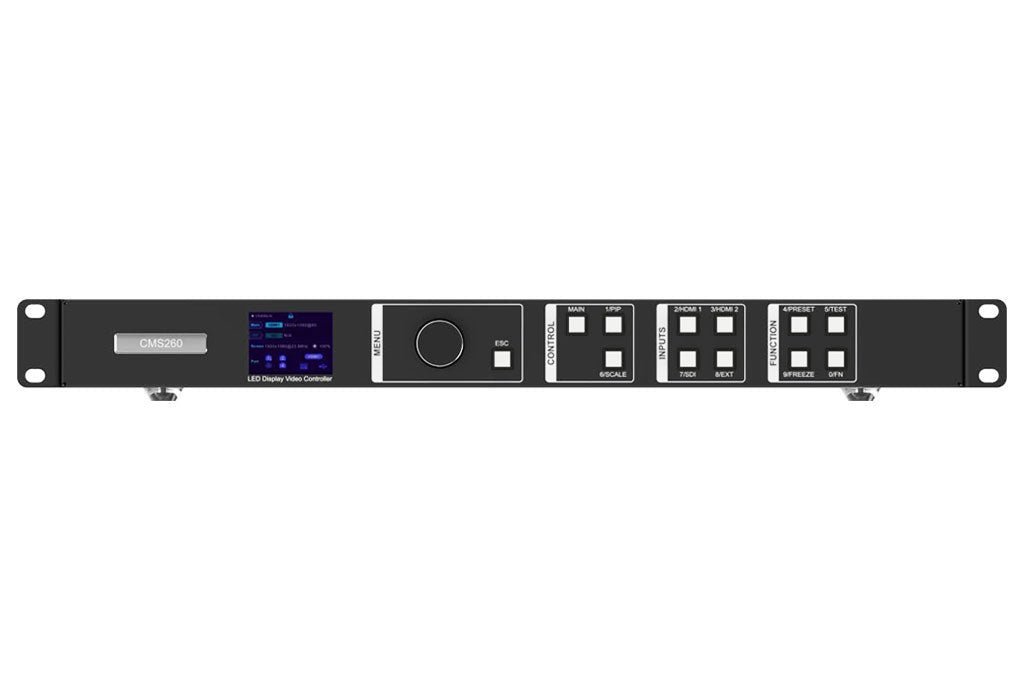 The CMS260 (VX400s-N) is NovaStar’s new all-in-one controller that integrates video processing and video control into one box. It features 4 Ethernet ports. A CMS260 (VX400s-N) unit can drive up to 2.6 million pixels, with the maximum output width and height both up to 3840 pixels.