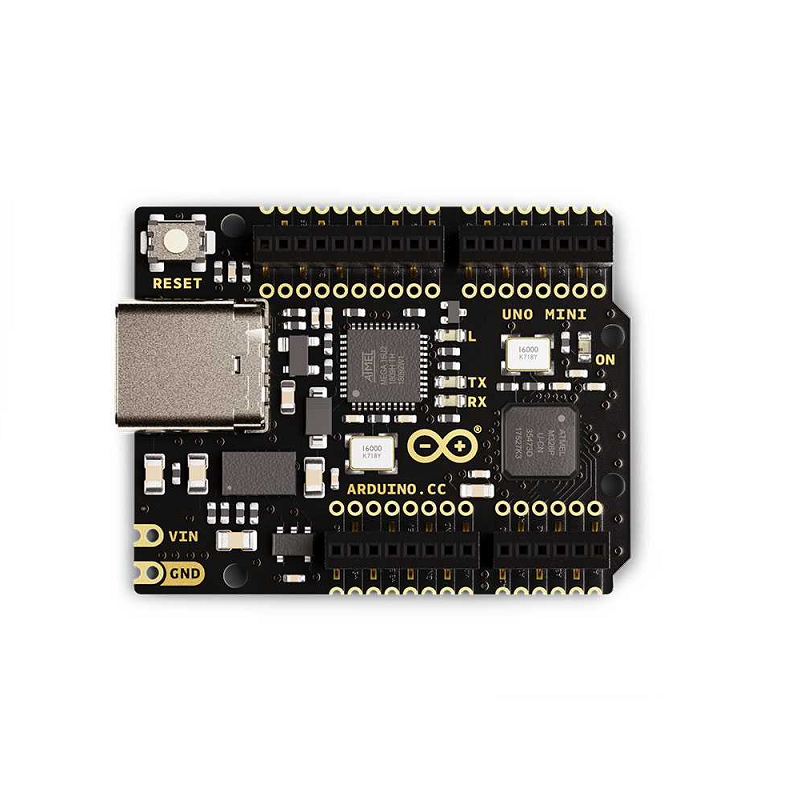 Arduino UNO Mini Limited Edition is a collector’s item for serious Arduino Lovers: hobbyists, students, makers, re-imaginers, dreamers, hopers, fans, engineers, designers, questioners, cake-makers, problem-solvers, puzzlers, gamers, debaters, developers, entrepreneurs, architects, future-shapers, musicians, scientists… 10 million projects based on (official) Uno boards that have contributed to this incredible story. So, This Arduino UNO Mini Limited Edition is a miniaturized version of the popular Arduino UNO board. The module is based on the chip ATmega328P. It is equipped with a USB type C connector for programming and board power supply, as well as available pins for connecting external power sources. The board has preinstalled female pins, built-in LED, reset button, and all other elements are known from standard UNO board, but placed on only 25% of the board’s dimensions.