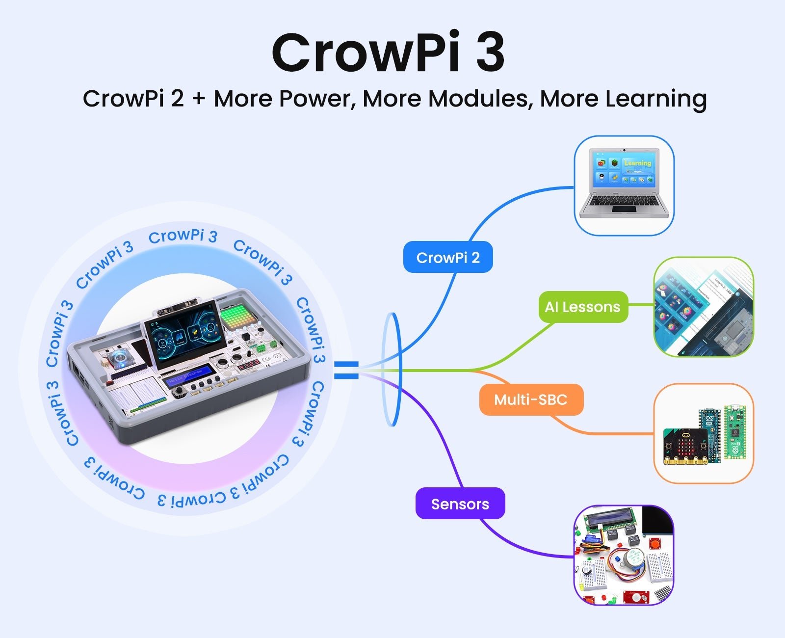 CrowPi 3 retains all the core strengths of its predecessor while adding more powerful hardware support, richer onboard modules, and a wider range of structured learning content.