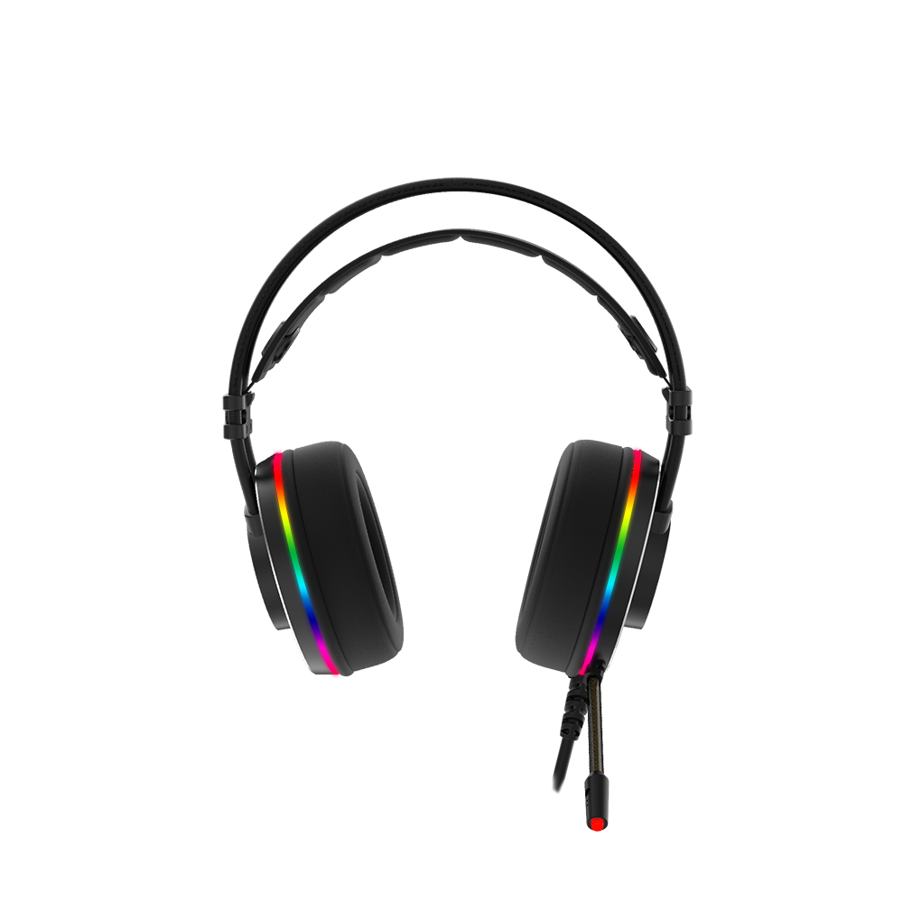 • Vibrant RGB Lighting Effects: Features a dynamic RGB light ring on the ear cups with customizable effects. The microphone tip also lights up, adding a professional and aggressive gaming aesthetic to your setup.