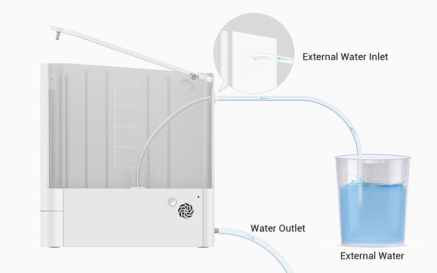 GrowCube comes with a 1.5L water tank, you can add water by pressing the top cover. When you have a variety of plants or need to leave for a long time, through the unique external water inlet of the fuselage, GrowCube can connect to external water sources to meet larger water needs. |
