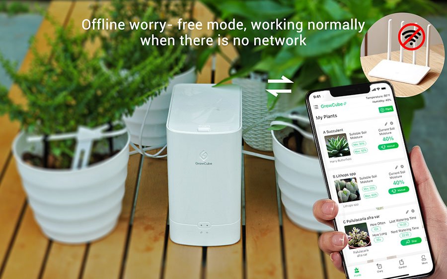 GrowCube is a smart watering system for plants based on four independent soil moisture sensors and water outlets. Combined with an exclusive APP, the automatic plant watering system aims to provide professional and simple watering methods for friends who enjoy growing plants. Noted: Growcube does not support 5G network at present. Due to the higher permission requirements of Google phones, we cannot guarantee that all Google phones can use the Growcube App. Please try to avoid using Google phones. |