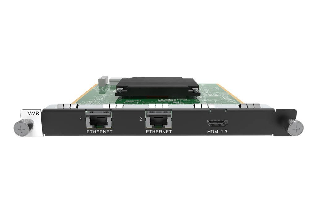 The H Series 2x RJ45 + 1x HDMI 1.3 Preview Card is an output card for the H Series H2/H5/H9/H15 Video Wall Splicers. It has two RJ45 Gigabit Ethernet outputs that connect to your network and one HDMI 1.3 output that connects to a monitor. The card allows you to monitor the input and output signals of the system via your network or directly on a monitor.