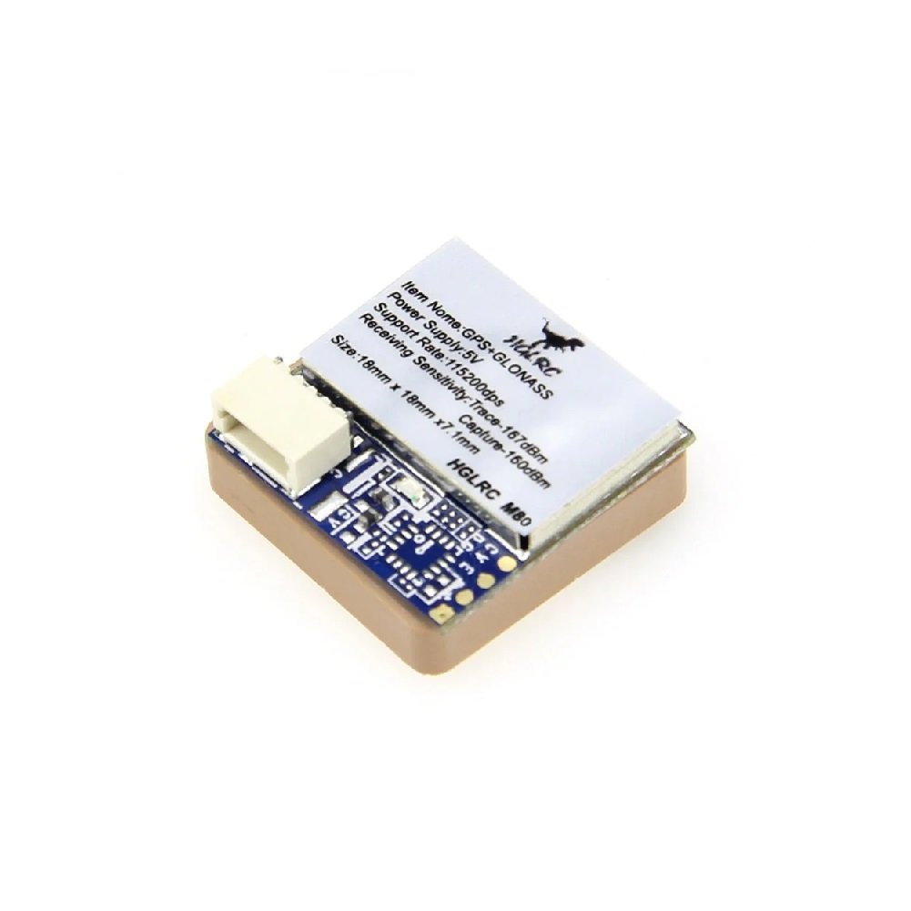 The HGLRC M80 GPS is a handy device for FPV racing drones. It helps drones know where they are by using GPS technology, which means they can fly more accurately and even return to their starting point if needed. This GPS module is small and lightweight, fitting perfectly on racing drones without adding too much extra weight.