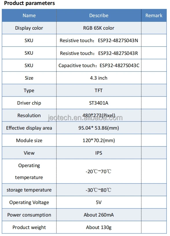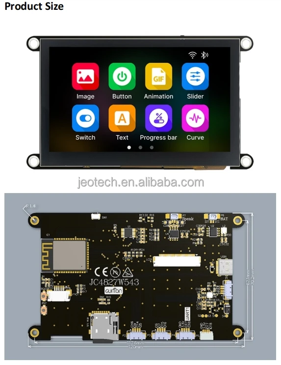JEO ESP32-S3 4.3-Inch IPS Capacitive Touch Screen LCD Display Module with WiFi & Bluetooth