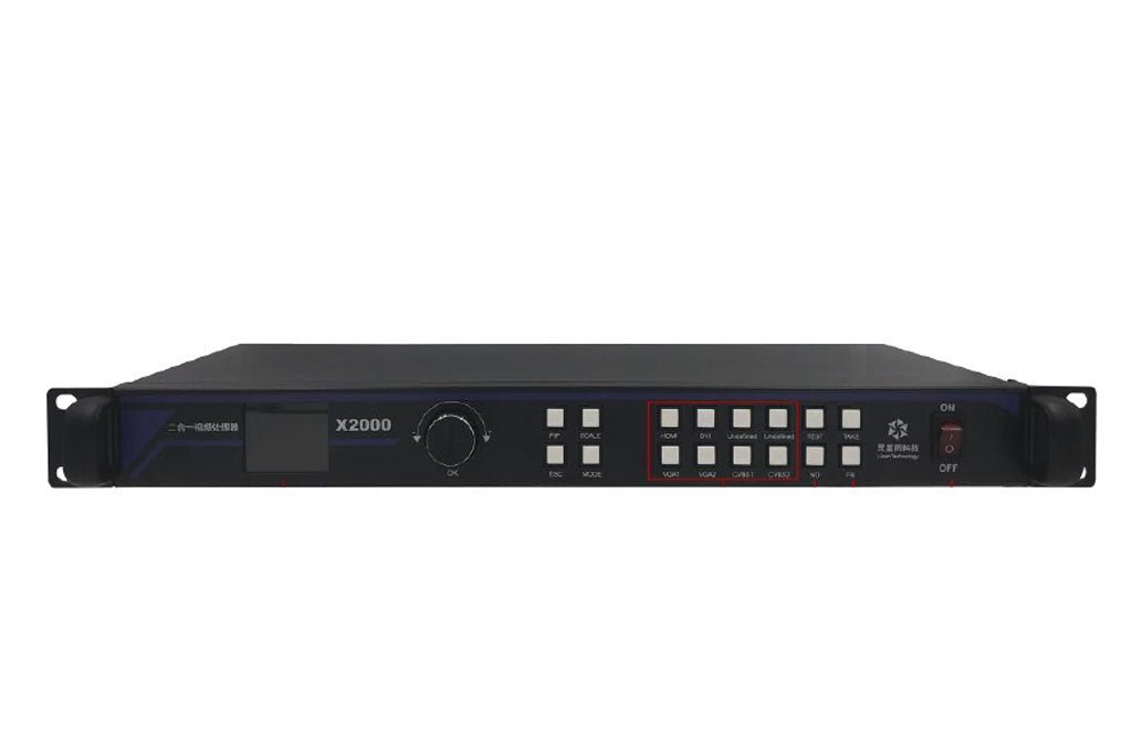 1) X2000 has various interfaces: 2 CVBS ports,2 VGA ports,1 HDMI port,1 DVI port(DVI LOOP); SDI(with SDI loop, optional)