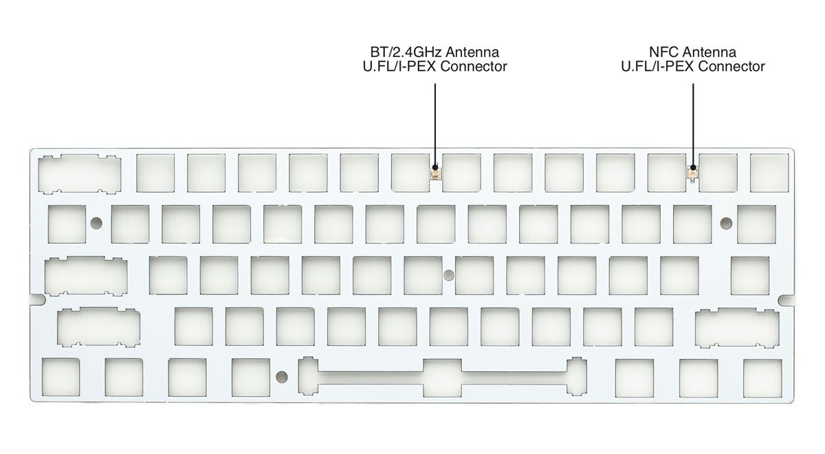 M60 Mechanical Keyboard Plate is a 60% plate board specially designed for M60 Mechanical Keyboard. This plate is made of FR-4 material and perfectly integrates Bluetooth (2.4GHz) antenna and NFC antenna, which enables high-performance RF transmission even if you are using a metal case. It also allows you to scan the NFC tag on the front of the keyboard.