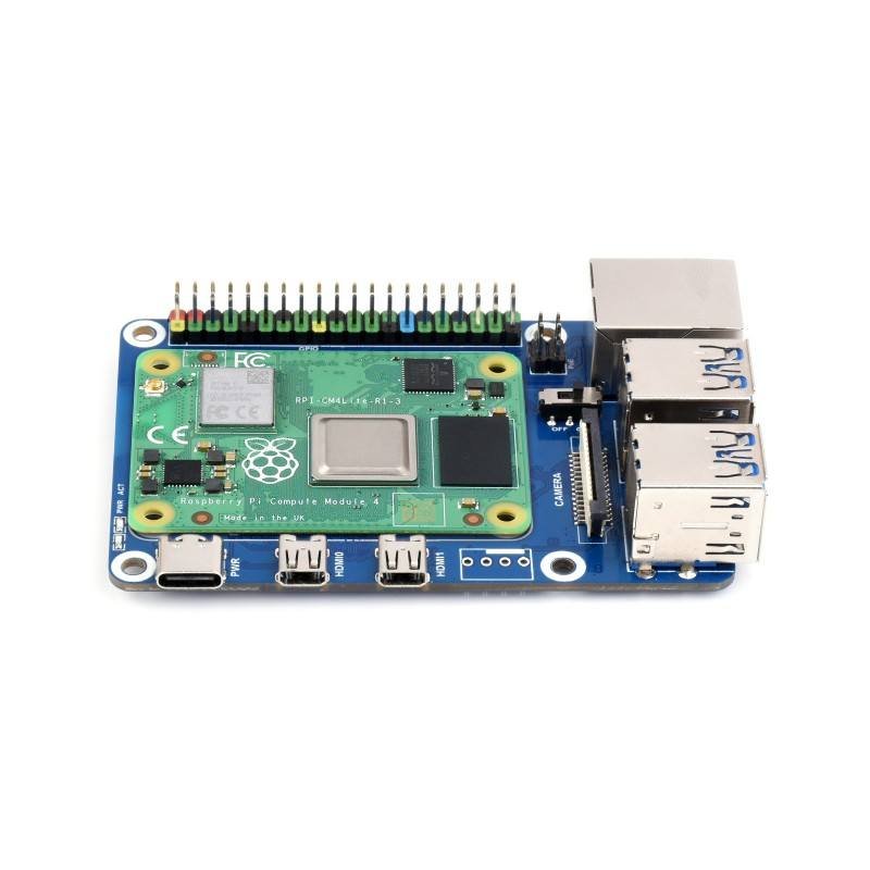 This is a CM4 To Pi 4B Adapter for Raspberry Pi and is an alternative solution for Raspberry Pi 4B. Onboard 4 x USB 3.0 ports, Gigabit Ethernet port, PoE header, and so on.