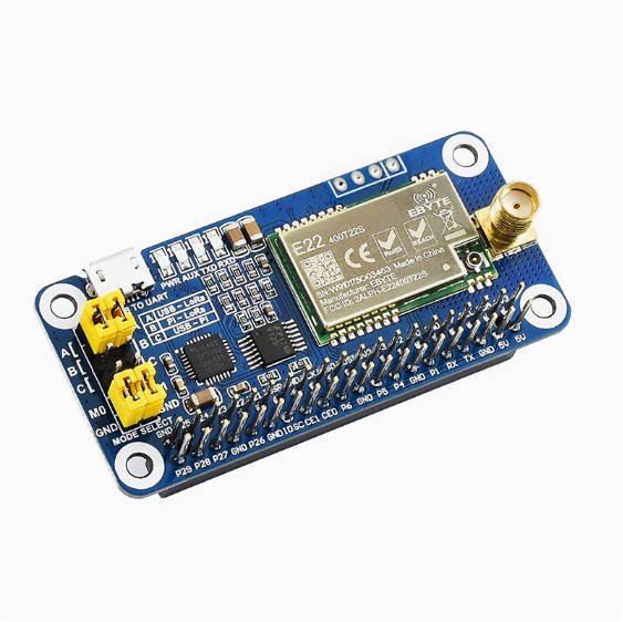 This is a Waveshare SX1268 LoRa HAT for Raspberry Pi 433MHz Frequency Band. It allows data transmission up to 5km through the serial port.