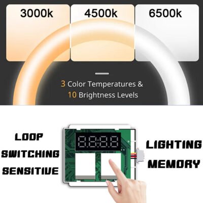 • Three-Color Temperature Control – Choose between Warm (3000K), Natural (4500K), and Cool (6500K) white light. Perfect for creating different moods and for accurate makeup application. Double tap left button to cycle through colors.