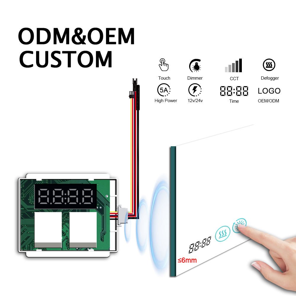 Upgrade your bathroom mirror with this YZKJ-B3-OTTC Dual Touch Switch Three Color Version with Temperature Display & Defogger, specially designed for smart LED mirrors, anti-fog mirrors, and mirror cabinets. This advanced all-in-one unit features a high-power 60W built-in driver that works with DC12V input, eliminating the need for a separate LED driver in many installations.