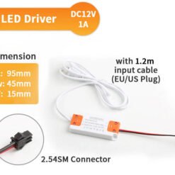 This compact power supply features switching technology for high efficiency and stable output, ensuring your LED lights operate consistently without flicker. The unit accepts wide AC input voltage and delivers 12V DC at 1A (12W), making it perfect for powering LED mirror controllers, cabinet lights, and small LED projects.