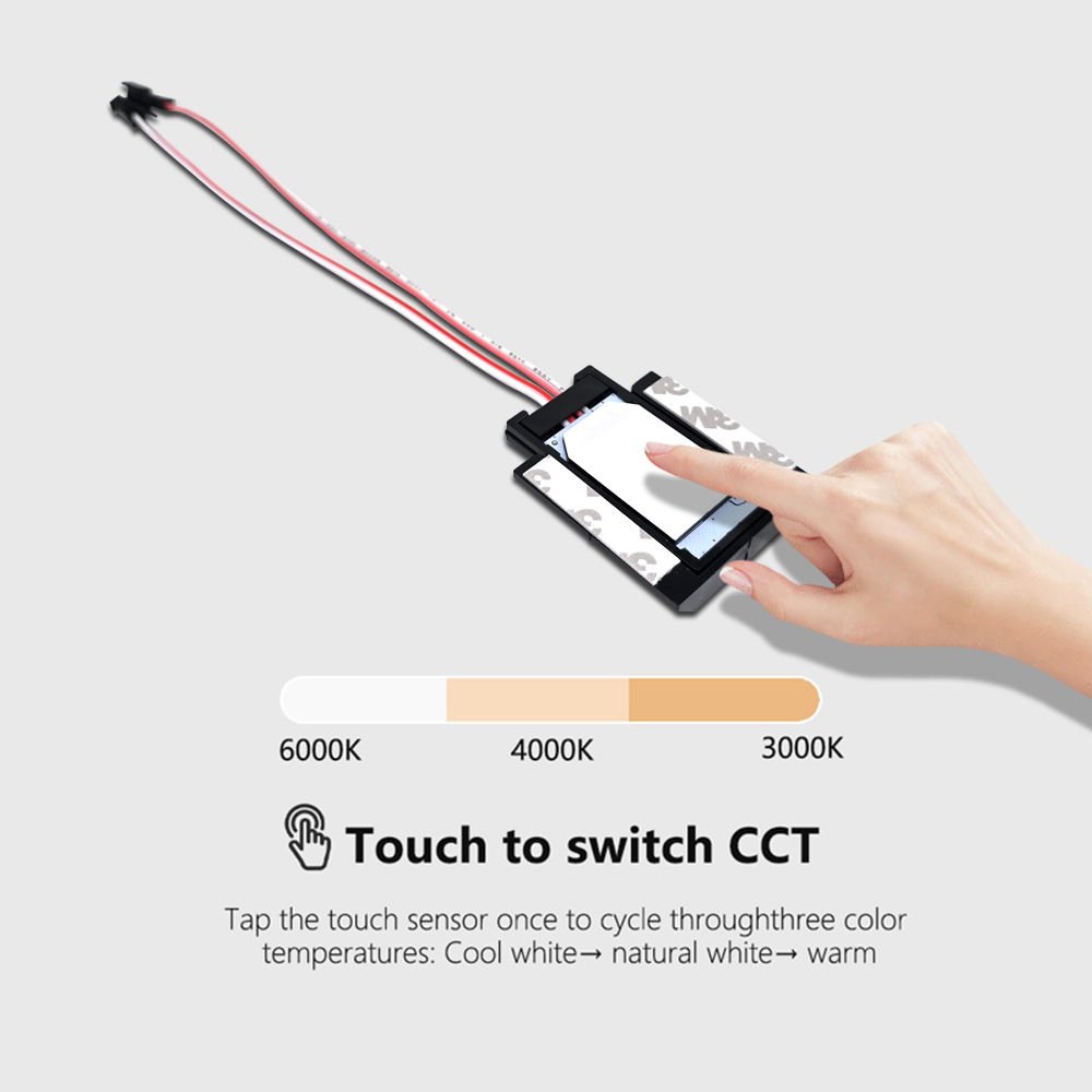 This advanced touch switch features three-color temperature control with capacitive sensor technology, allowing smooth and sensitive control directly through mirror glass (1-6mm thickness supported). Perfect for makeup application where accurate lighting is essential.