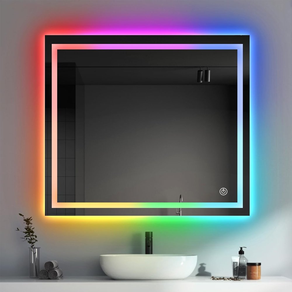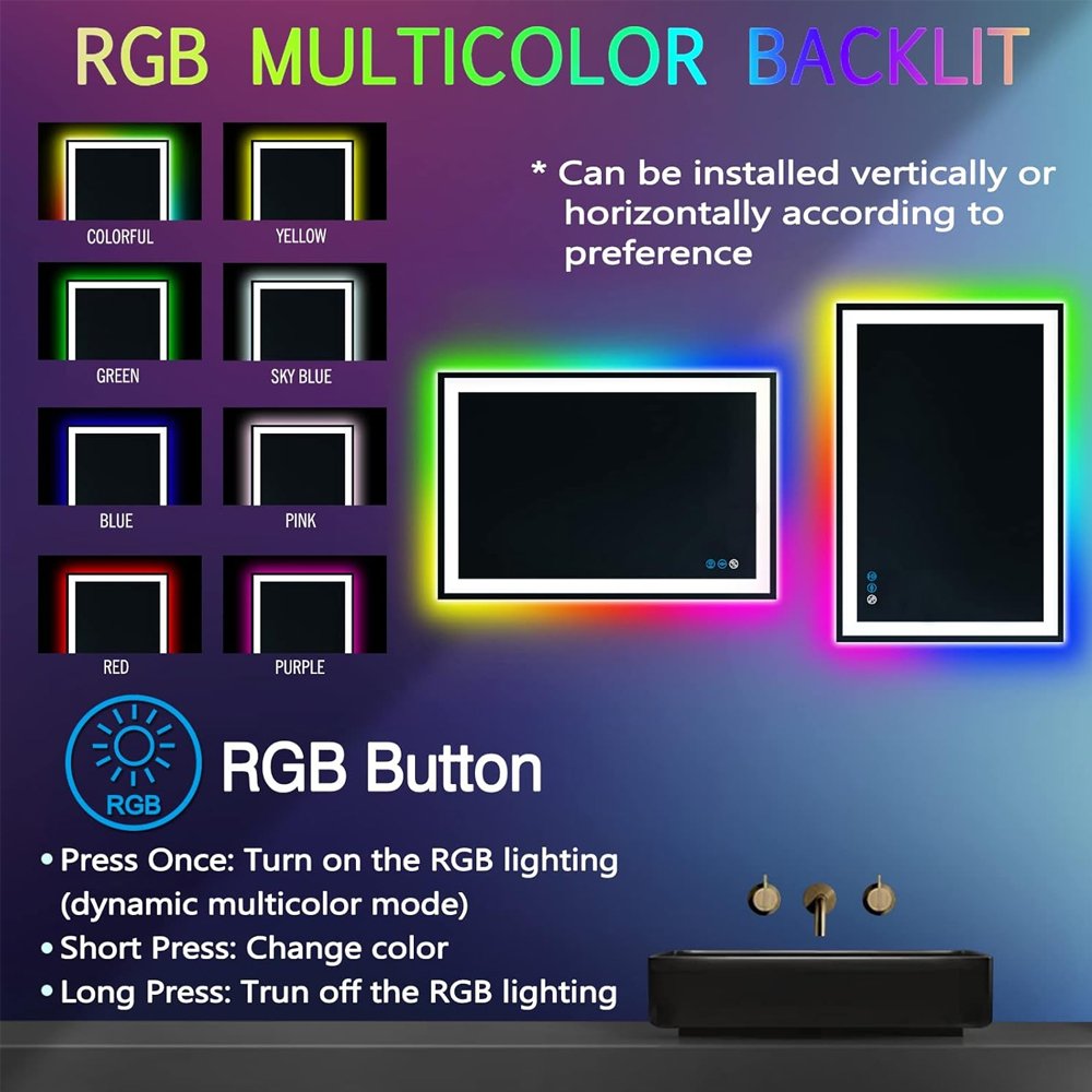 • RGB Color Control – Create millions of vibrant colors for your mirror lighting. Perfect for mood lighting, bathroom ambiance, or decorative effects. Cycle through colors with simple touch.